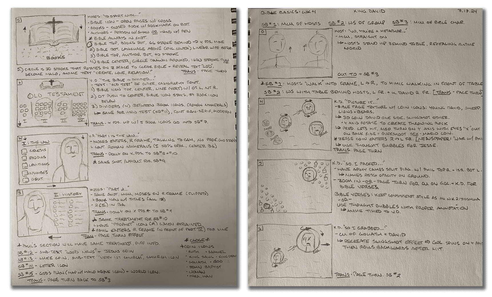 Armed with this concept, I collaborated with Northview's Creative Team to review initial designs and strategize pivotal moments for the characters' transition into the Bible. The project extended over three months and required more than 220 labor hours to complete.